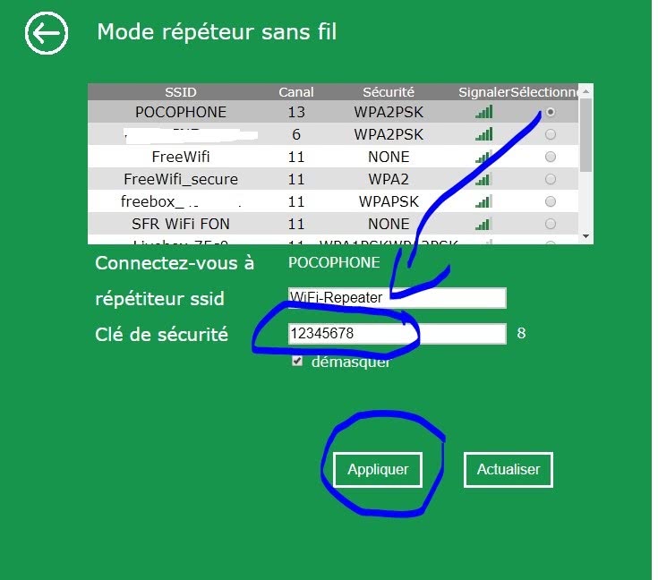 Choisir le mode repeater / repeteur..