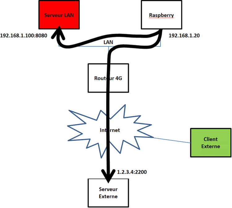 Ici, nous allons utiliser un tunnel reverse-ssh pour permettre les connexions entrantes.