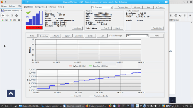 je viens donc d'installer la dernière version de huawei monitor et de la tester sur mon E5186s-22a