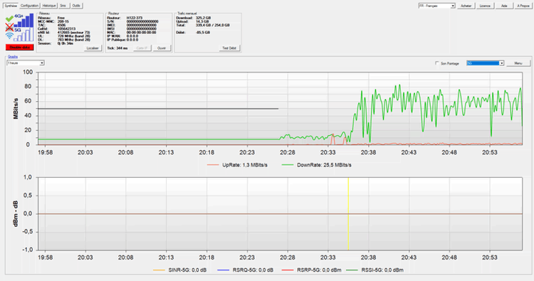 te mets aussi une capture d'écran on voit un moment où la 5G disparaît le rsrp