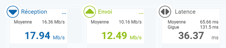 te mets aussi les speedtest réalisé en 4G 700 + 1800 + 2600 et je te mets aussi